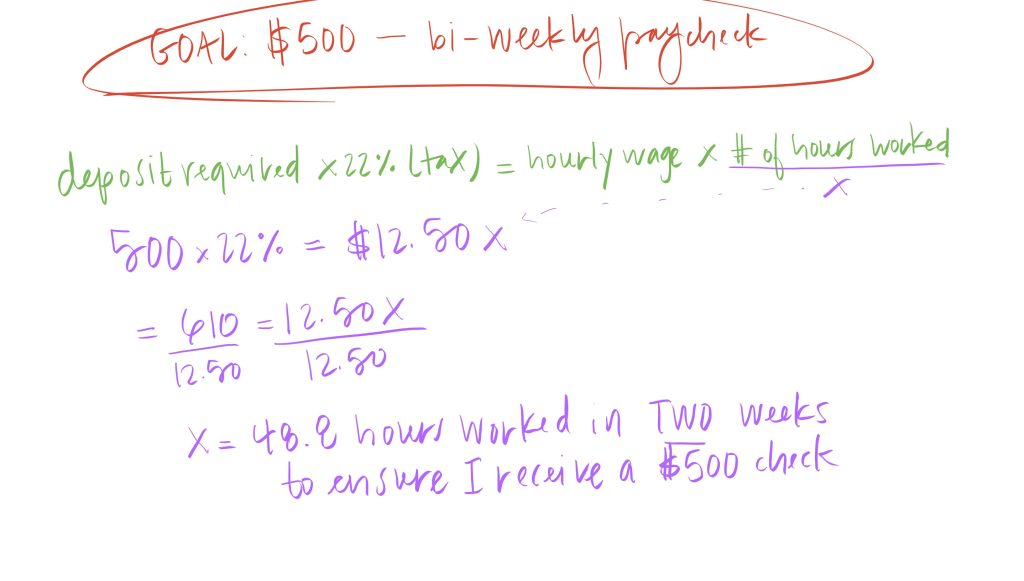 Basically, to achieve a $500 check, I had to work ~49 hours which meant I had to make arrangements with my manager. So, you hopefully aren’t criminally underpaid, or your deposit requirement is lower, but you may have to pick up some extra shifts, make a couple more tik toks, sell some part pieces, or brand deals for good measure.