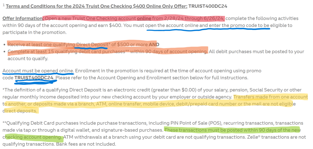 - I also, must open the account and use the promo code (as seen above – TRUIST400DC24)
