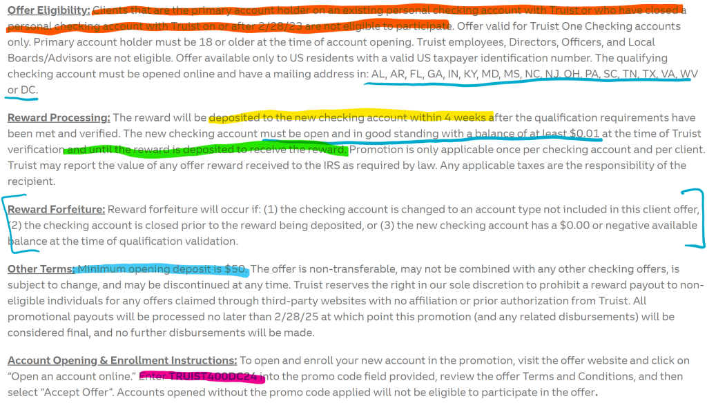 - If you’ve already opened a personal checking account with Truist or closed one after February 28th, 2023, you’re not eligible (that’s me, booooo!)