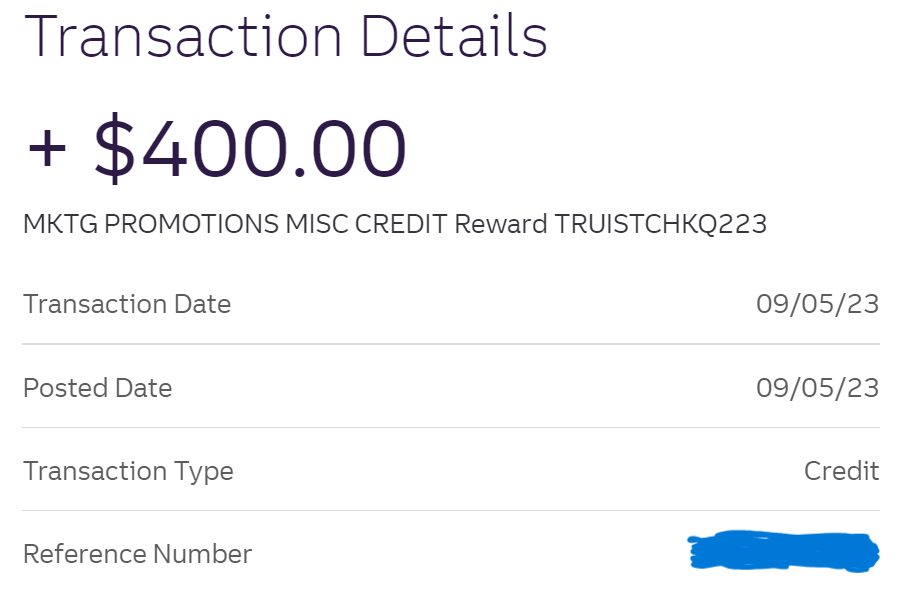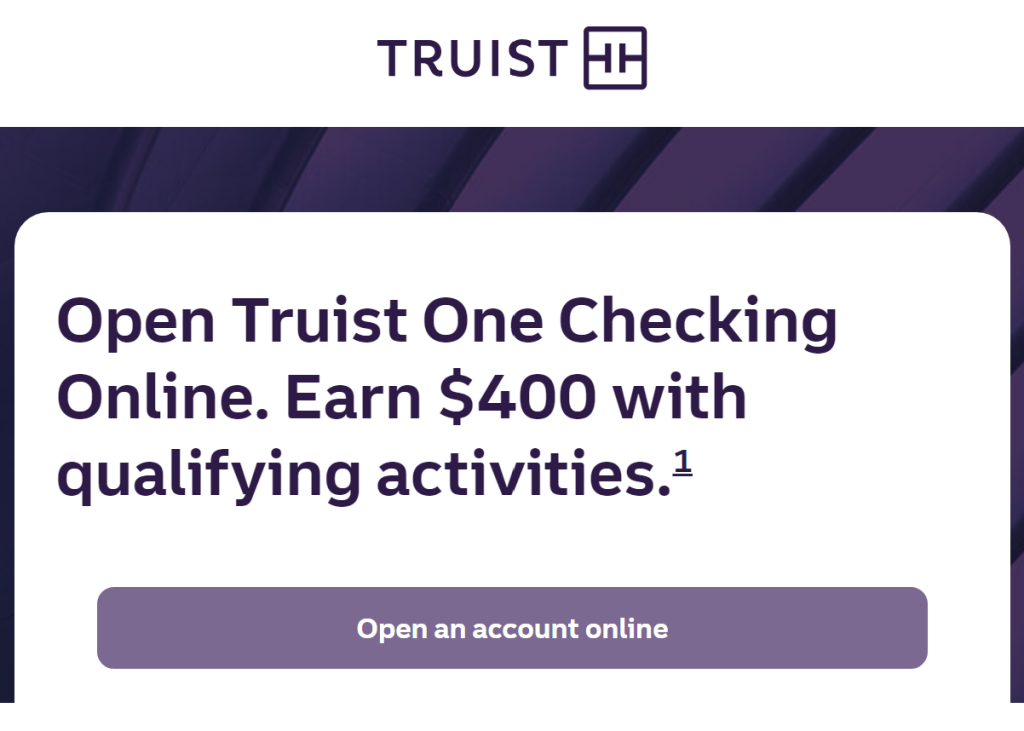 - Once again, the account must be opened online (not in-person) and I have to use the code, TRUIST400DC24 (or sometimes there’s a link to click that automatically applies the promo code)