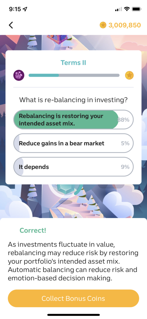 The closest you get to financial literacy is trivia once per day. Long Game merely tests you about financial literacy not teaching you. To aid this area, I would suggest some finance focused games that help you answer the trivia.